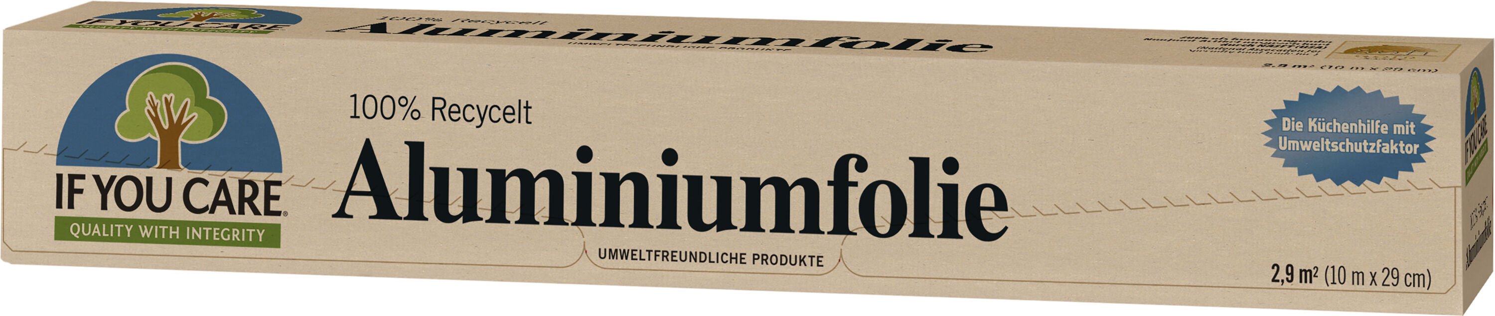 10 m x 29 cm. 100% recyceltes Aluminium, 100% recycelte Pappe (Umkarton).95% weniger Energieverbrauch, 100% ungebleicht und kompostierbar (Umkarton),Müllvermeidung durch Recycling. Gleiche Leistungsfähigkeit wie herkömmliche Folie.