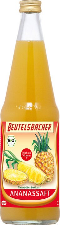 Die sonnengereiften Ananas entstammen ausgesuchten ökologischen Entwicklungsprojekten. Für einen Liter biologischen Ananassaft werden circa 5-8 ausgewählte Ananas im Ernteland schonend gepresst. Um das Ananasaroma und die Inhaltsstoffe optimal zu schonen, wird der naturtrübe Ananassaft als Direktsaft produziert. Der erfrischende Geschmack dieser Tropenfrucht bleibt dadurch besonders gut erhalten. Ananas als eine der köstlichsten exotischen Früchte ist als naturtrüber Direktsaft ein unvergleichlicher Genuss!
