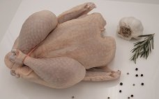 Hähnchen ganz, ca. 2,2 kg auf Vakuum-Tray . Preisangabe ist der Kilopreis