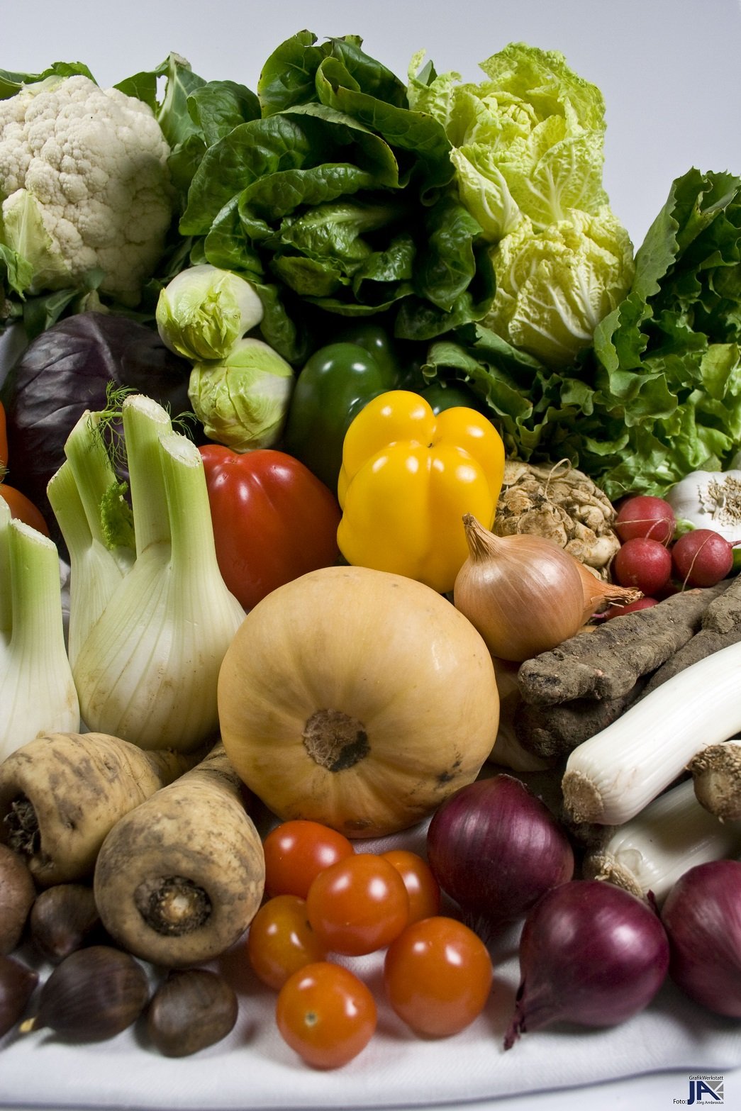 Die geplante Zusammenstellung mit Gemüse/Salat & Obst in "milder Ausführung".