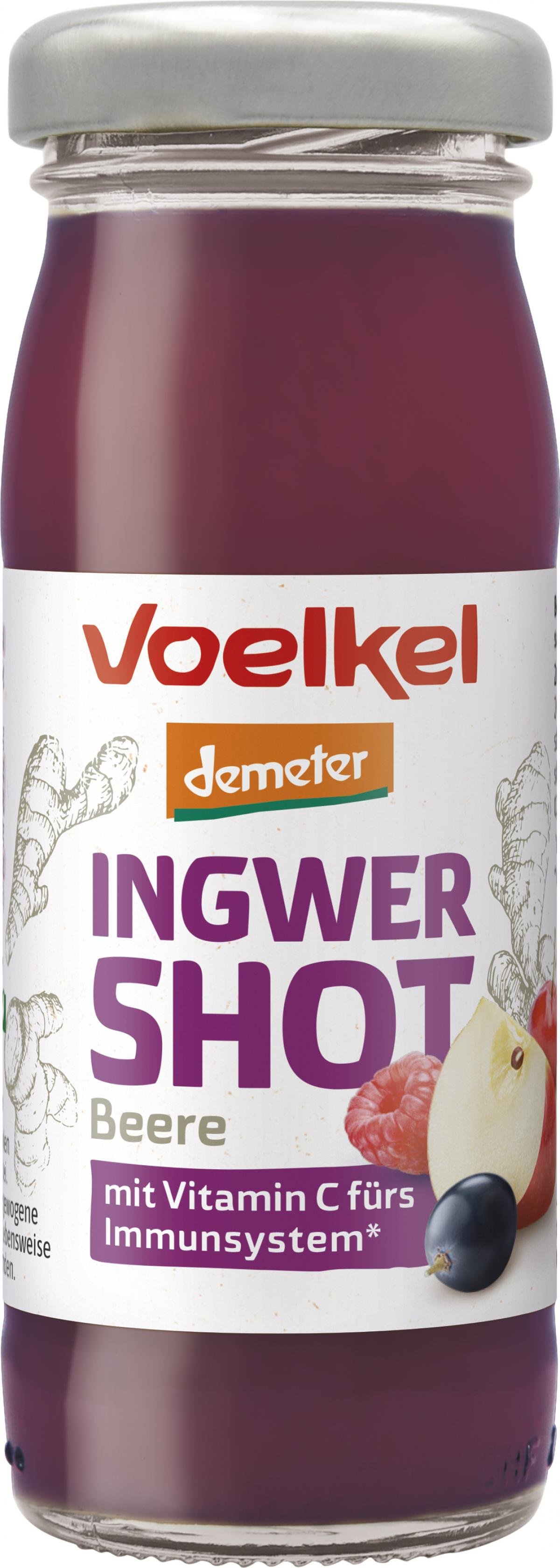 Unser Shot Ingwer & Beeren kickt mit reichlich natürlichem Vitamin C aus der Acerola-Kirsche und dem Geschmack von aromatisch-scharfem Ingwer und fruchtigen Beeren. Hergestellt aus besten Demeter-Zutaten.