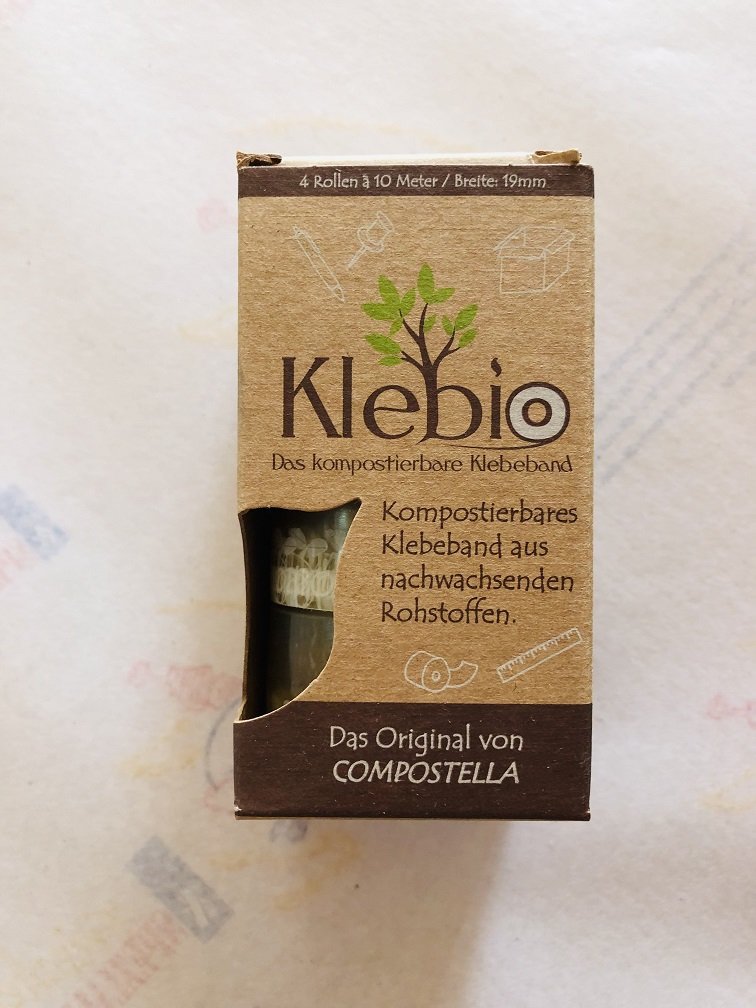 Das kompostierbare Klebio besitzt eine hohe Klebkraft und ist hochtransparent. Der Vorteil gegenüber herkömmlichem Klebeband: Klebio kann per Hand von der Rolle abgetrennt werden und lässt sich rückstandslos von seinem Untergrund wieder ablösen. Dadurch kann es, ähnlich wie eine Haftnotiz, mehrmals wiederverwendet werden.