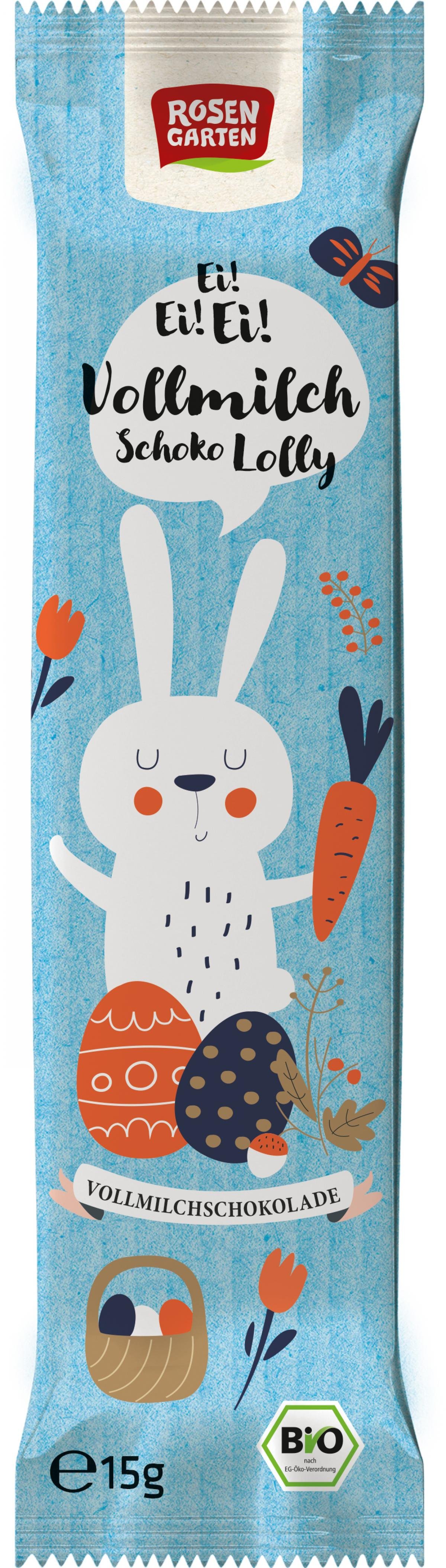 Der Klassiker: Lolly in Hasen-Form aus zart schmelzender Vollmilchschokolade, am Stiel und in buntem Papier verpackt.
